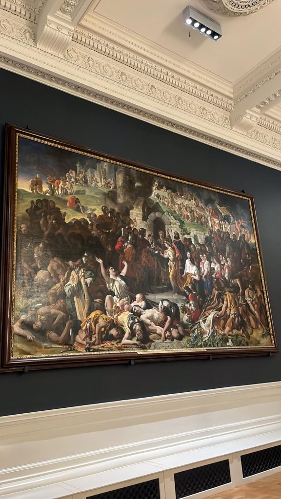 One of the most significant painting that you can find in the museum about the Irish history is the “The Marriage of Strongbow and Aoife” by Daniel Maclise, which represent the start of the English invasion in Ireland and the wedding of the English army general Strongbow and the seventeen-year-old daughter of one of the Irish Kings Aoife, surrounded by the consequences of the invasion, as you can see the city still burning, the people dying and the women being raped.